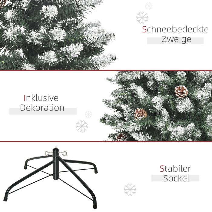 Haben Sie schon oft überlegt, einen echten künstlichen Weihnachtsbaum zu kaufen, weil künstliche Bäume oft unrealistisch wirken? Dann sind Sie hier genau richtig! Der künstliche Weihnachtsbaum von HOMCOM vereint die Schönheit eines natürlichen Baums mit schneebedeckten Zweigen und dekorativen Zapfen. Dank der stabilen Metallstruktur des künstlichen Weihnachtsbaums lässt er sich leicht auf- und abbauen. Zögern Sie nicht länger und bringen Sie festliche Magie in Ihr Zuhause!