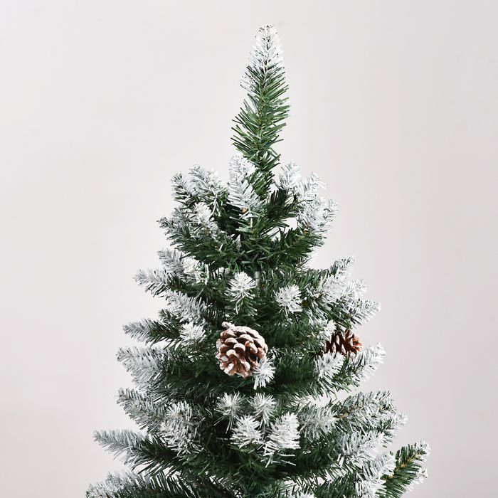 Künstlicher Weihnachtsbaum, 630 Zweige, 37 Zapfen, verschneite Spitzen, feuerfest, 150 cm