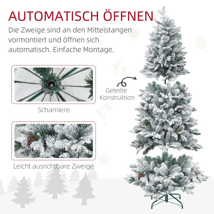 Verwandeln Sie Ihr Zuhause in ein winterliches Wunderland mit dem HOMCOM Weihnachtsbaum. Jede Zweigspitze des Christbaums ist naturgetreu gestaltet und mit bezauberndem Kunstschnee bedeckt, ergänzt durch realistische Tannenzapfen. Die flammhemmenden Materialien des Christbaums sorgen für ein sicheres Fest und bringt mühelos festliche Stimmung in Ihr Heim. Geniessen Sie die Magie der Weihnachtszeit in vollen Zügen und schaffen Sie eine gemütliche, festliche Atmosphäre für Ihre Liebsten.