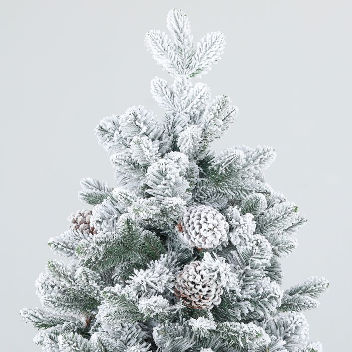 Künstlicher Weihnachtsbaum, Kunstschnee & Tannenzapfen, realistisch, flammhemmend, Metallfuss, 183 cm, Grün