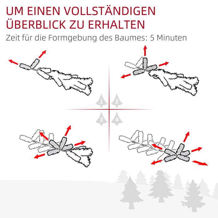 Weihnachtsdeko leicht gemacht, für immer! Dieser HOMCOM Weihnachtsbaum ist ein pflegeleichtes Must-Have für die bevorstehende Festzeit. Aus flammhemmendem Kunststoff hergestellt, garantiert der Weihnachtsbaum Sicherheit in Ihrem Zuhause. Einfach aufstellen, dank des Fertigdesigns. Mit integrierten LEDs sparen Sie sich die Lichterkette und können bei Bedarf zusätzlichen Baumschmuck anbringen. Inklusive Ständer für eine sichere Stabilität.