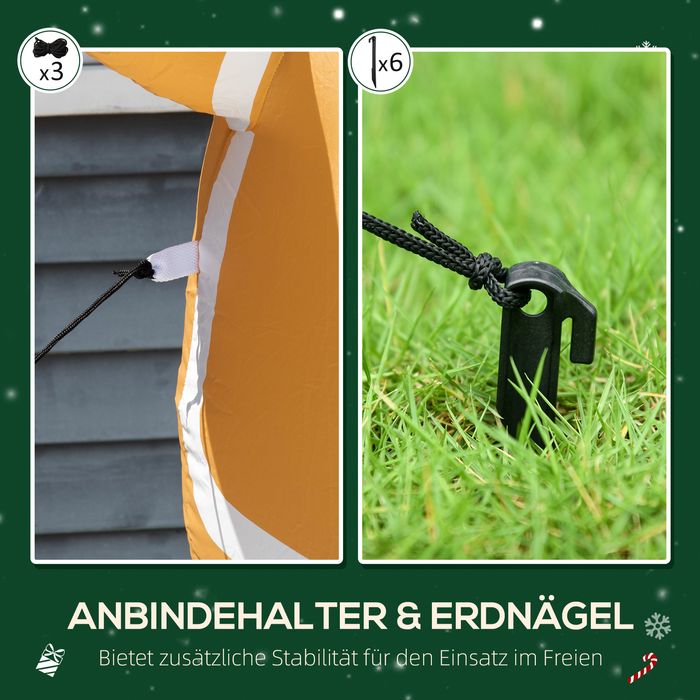 - Zubehör inklusive: Enthalten bei der Weihnachtsfigur sind 6 Heringe und 3 Spannseile zur stabilen Befestigung am Boden sowie ein Gebläse für eine rasche Installation.