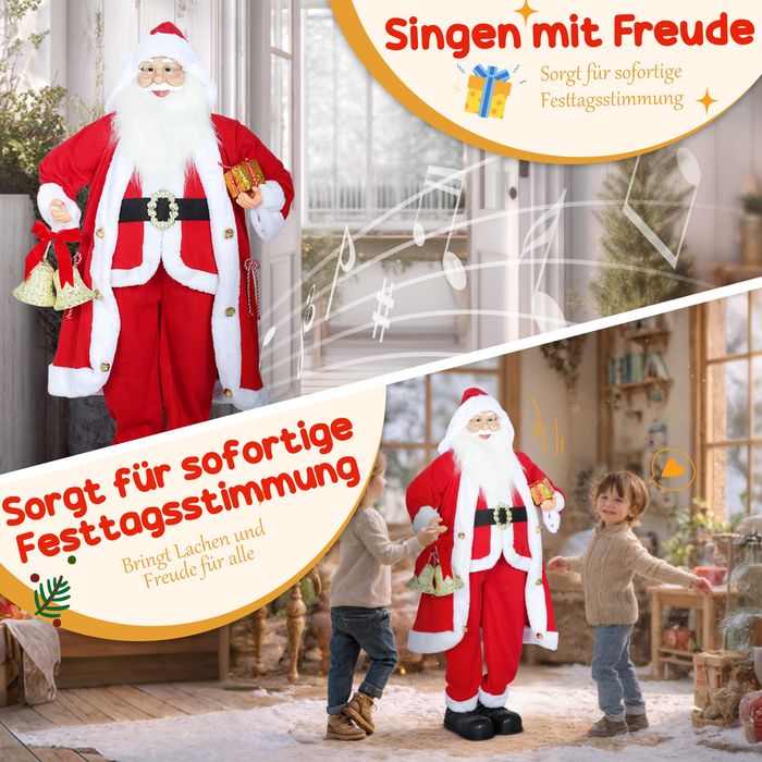 - Bezauberndes animiertes Zentrum: Dieser 115 cm grosse animierte Weihnachtsmann, der seine Hände auf und ab bewegt und dabei fröhliche Weihnachtslieder singt, verwandelt Ihr Wohnzimmer oder Ihren Flur in ein lebhaftes, magisches Spektakel.
