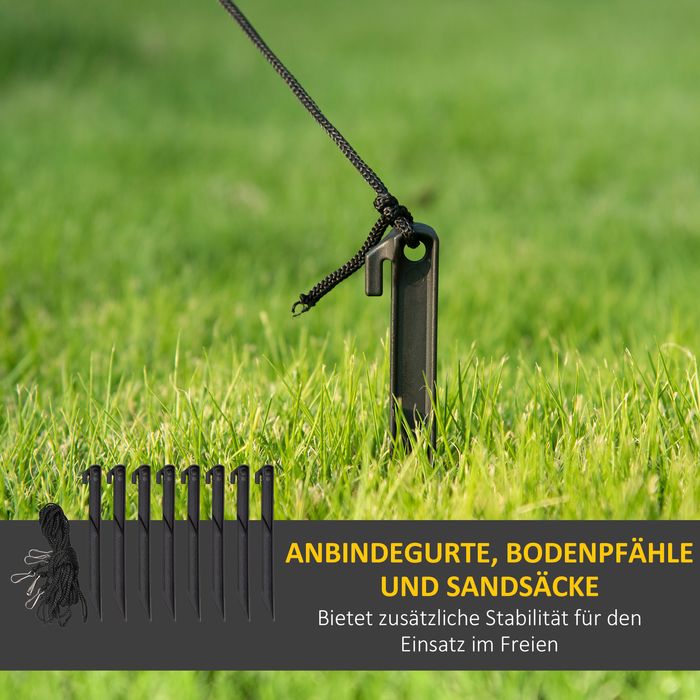 - Sicher verankert: Im Lieferumfang sind acht Erdnägel, vier Spannseile und vier Sandsäcke enthalten, die dafür sorgen, dass Ihre Weihnachtsdekoration auch bei windigem Wetter stabil bleibt