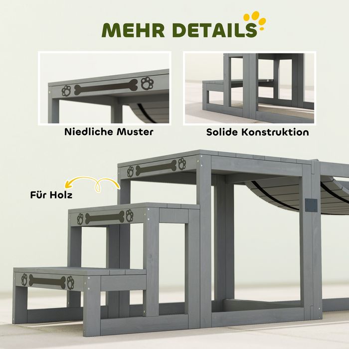 Agility Set Hunde 3-teilig, Brücke, Treppe, Plattform, Tannenholz, 117x50x56cm, Grau