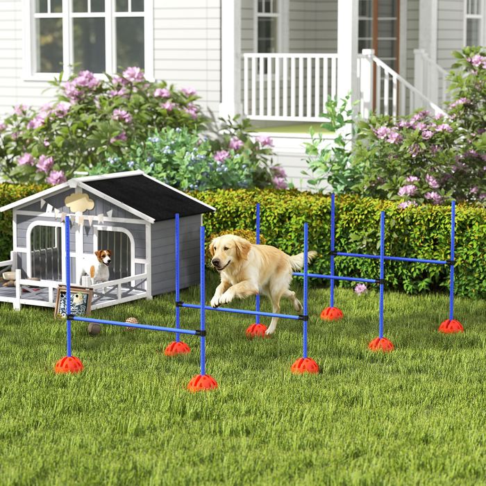 Agility Set Hunde 4-teilig, 4 Hürden, Tragetasche für Sprungtraining, Blau