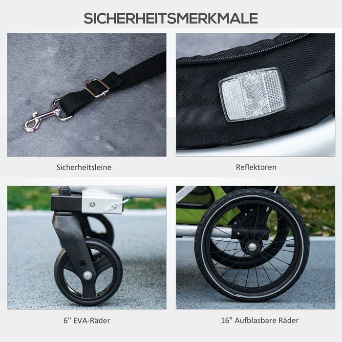 2-in-1 Hundebuggy Hundejogger Fahrradanhänger bis 20kg 2 Reflektoren 1 Sicherheitsleine 150 x 68 x 95 cm Grün