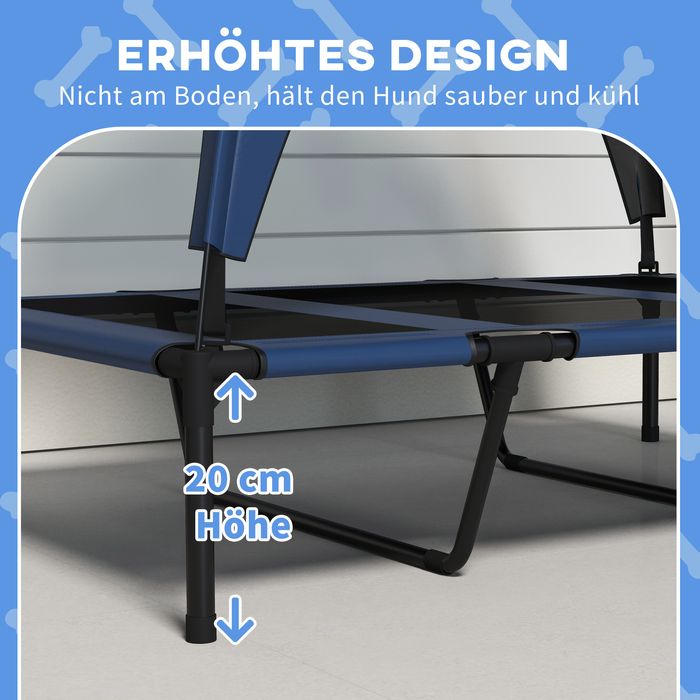 Hundebett Outdoor-Hundebett, wetterbeständig, erhöhtes Gestell, 106 x 76 x 94 cm, Dunkelblau
