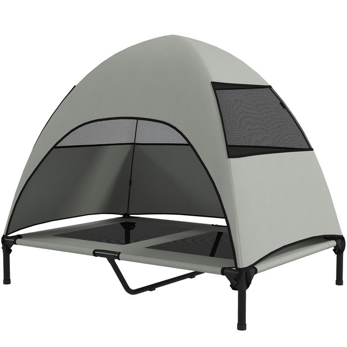 Verwöhnen Sie Ihren pelzigen Freund mit dem PawHut Outdoor Hundeliege mit Dach, das ihn kühl und geschützt hält. Das innovative Design des Outdoor-Hundebetts umfasst ein dreiseitiges Vordach für optimalen Sonnenschutz und ist leicht abnehmbar. 18 cm erhöht für stabile Trockenheit und aus luftigem Texteline-Netz gefertigt, bietet die Outdoor-Hundeliege kleinen bis mittleren Hunden bis 35 kg einen idealen Rückzugsort. Perfekt für Zuhause oder unterwegs mit der beiliegenden Aufbewahrungstasche!