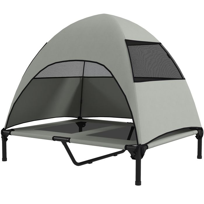 Verwöhnen Sie Ihren pelzigen Freund mit dem PawHut Outdoor Hundeliege mit Dach, das ihn kühl und geschützt hält. Das innovative Design des Outdoor-Hundebetts umfasst ein dreiseitiges Vordach für optimalen Sonnenschutz und ist leicht abnehmbar. 18 cm erhöht für stabile Trockenheit und aus luftigem Texteline-Netz gefertigt, bietet die Outdoor-Hundeliege mittlere bis grosse Hunden bis 30 kg einen idealen Rückzugsort. Perfekt für Zuhause oder unterwegs mit der beiliegenden Aufbewahrungstasche!