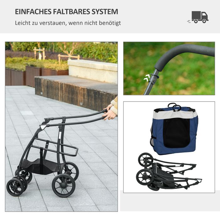 - . Der Hundebuggy kann leicht zusammengeklappt werden