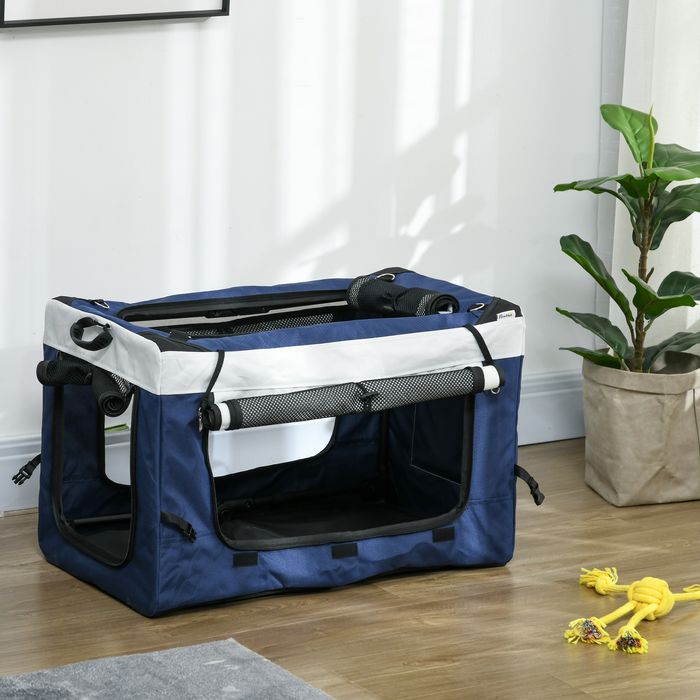 Hundbuggy bis 10kg klappbar verstellbare Trageriemen abnehmbarer Korb 81 x 58 x 97,5 cm Schwarz + Blau + Weiss