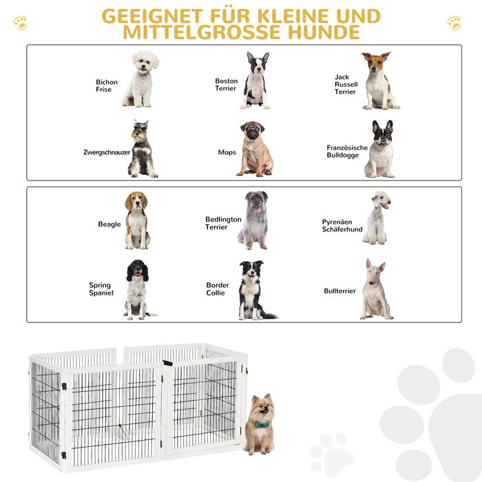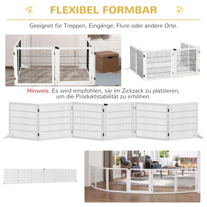 Absperrgitter für Hunde, klappbar, 432 x 36 x 70 cm, Kiefernholz, Weiss