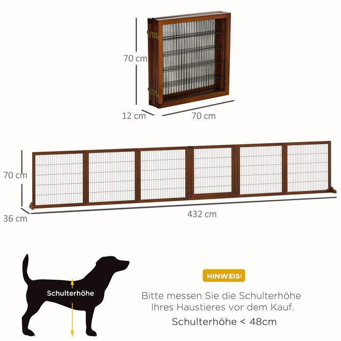 Absperrgitter für Hunde, klappbar, Kiefernholz, 432 x 36 x 70 cm, Kaffee