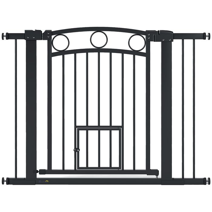 Haustiertor, 77 cm Treppengatter, verstellbare Breite 76-104 cm, mit Katzentür, für Treppen und Türöffnungen, Schwarz