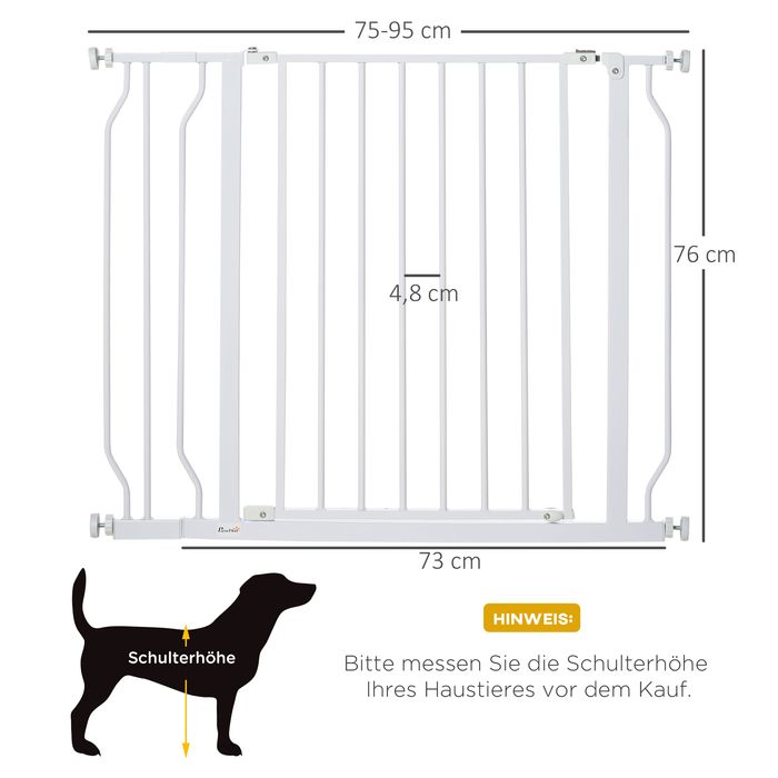 Hunde Türschutzgitter, Treppenschutzgitter, 75-95 cm Hunde Türgitter, Baby Türgitter, Klemmgitter, Schutzgitter, Zwei-Wege-Öffnung, Stahl, Weiss