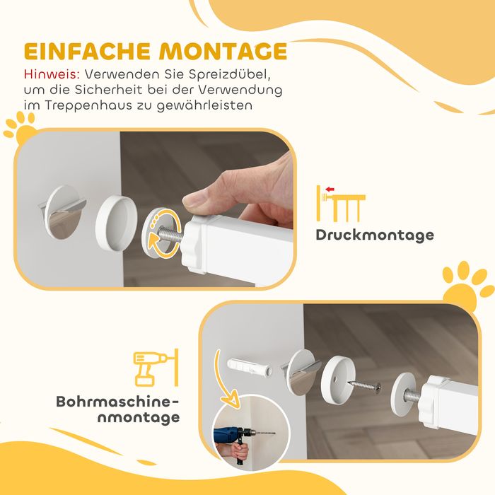 - Schnelle Installation: Treppenschutzgitter in Minuten ohne Bohren dank Druckbefestigung – keine Wandbeschädigung, Werkzeuge nötig. Schrauben optional für Stabilität. Perfekt für Mietwohnungen, Küchen, Flure.