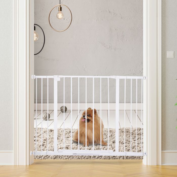 Unser Absperrgitter im stilvollen Design bereitet Ihnen eine einfache und effektive Möglichkeit zum Einsperren Ihres Haustiers wie Katze oder Hund in einem bestimmten Raum. Es ist durch die Klemmbefestigungsmechanismus leicht an der Tür zu montieren, ohne bohren zu müssen. Mit zwei zusätzlichen Erweiterungsteilen kann das Schutzgitter von 76 cm bis 107 cm für verschiedene Türbreite verstellbar. Schützen Sie mit unserem Absperrgitter Haustier und Inneneinrichtung gleichermassen.
