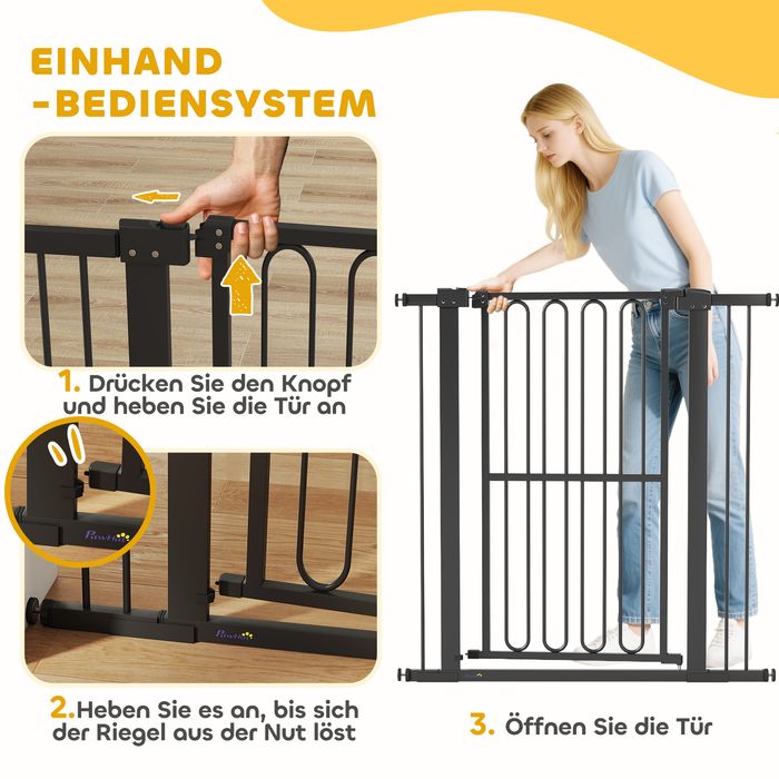 - Bequemer Zugang: Ausgestattet mit einem einfachen Verriegelungsmechanismus, doppeltem Schliesssystem und Einhandbedienung, ermöglicht dieses Türgitter zum Klemmen das Öffnen der Tür in beide Richtungen
