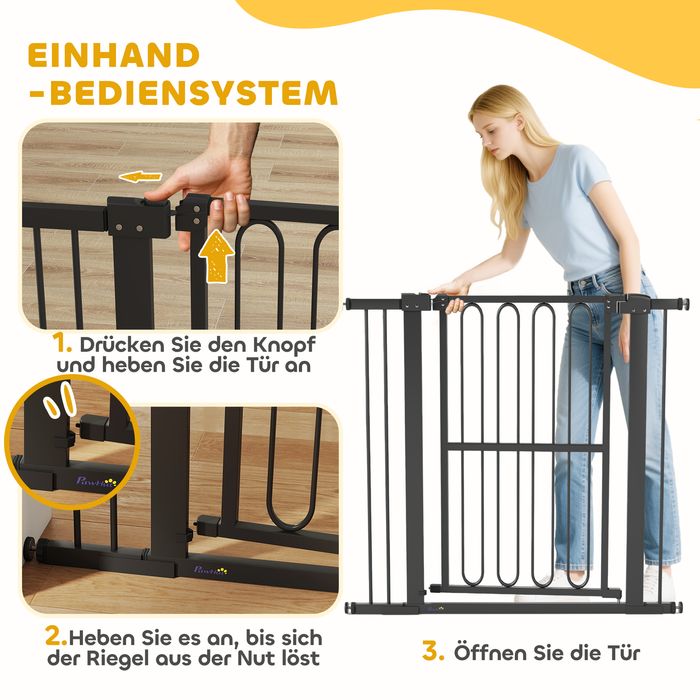 - Bequemer Zugang: Ausgestattet mit einem einfachen Verriegelungsmechanismus, doppeltem Schliesssystem und Einhandbedienung, ermöglicht dieses Türgitter zum Klemmen das Öffnen der Tür in beide Richtungen