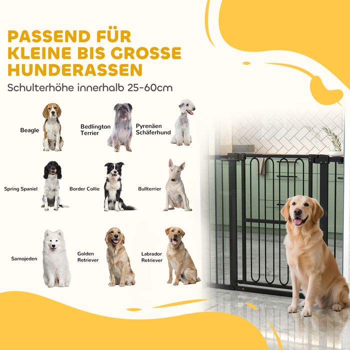 Sichern Sie Ihren Vierbeiner und optimieren Sie Ihr Zuhause mit dem PawHut Türgitter ohne Bohren. Verstellbar von 76 bis 104 cm, ist dieses Treppengitter ideal für Treppen, Flure und Türen. Das doppelte Verriegelungssystem des Treppenschutzes erlaubt ein einfaches Öffnen mit einer Hand und sorgt für Sicherheit, da die Tür beidseitig schwingt. Für kleine bis grosse Hunde geeignet, harmoniert es perfekt mit Ihrer Einrichtung.