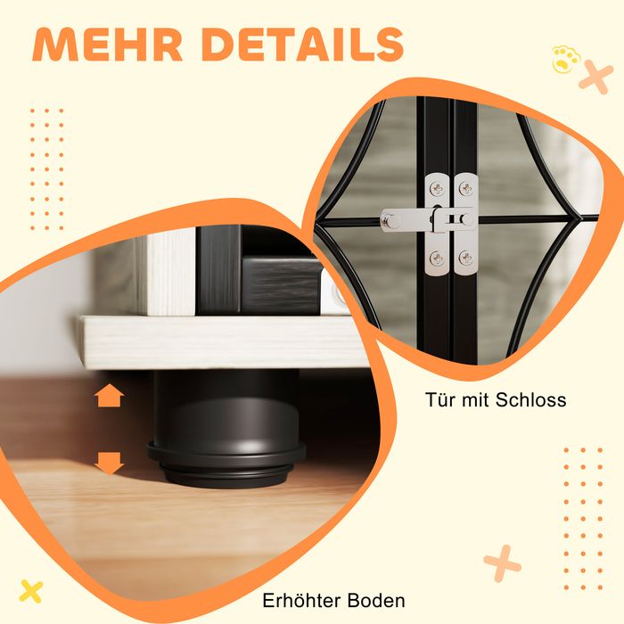- Sicher und belüftet: Mit einer vorne abschliessbaren Tür ausgestattet, die Ihre Haustiere sicher verwahrt. Dank des Drahtgitters an drei Seiten ist für angenehme Kühle und Komfort gesorgt.