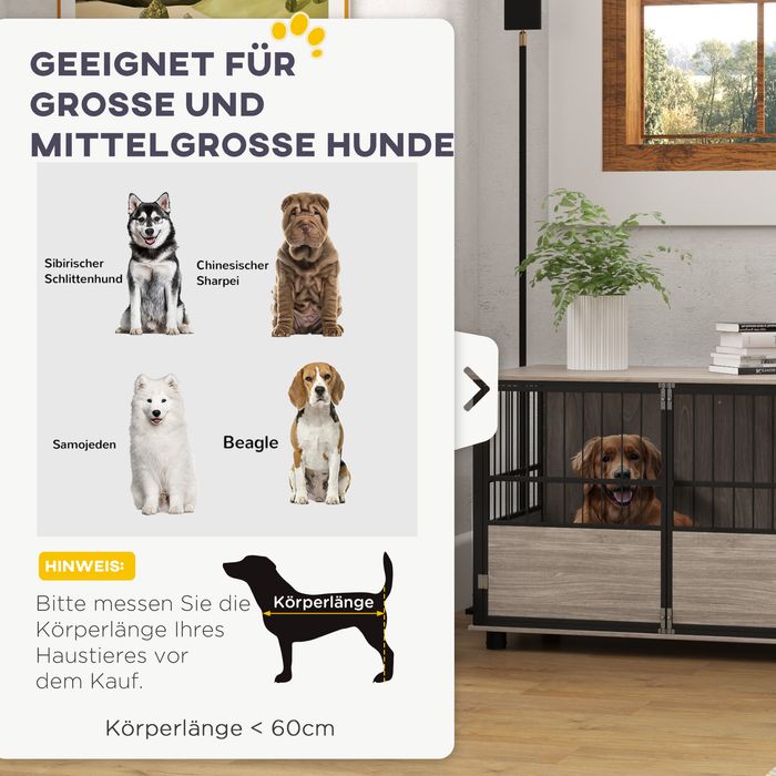 - Elegante Hundebox: Diese Hundebox dient als sicherer Rückzugsort für Ihren Lieblingsvierbeiner und fügt sich dabei nahtlos in jedes Interieur