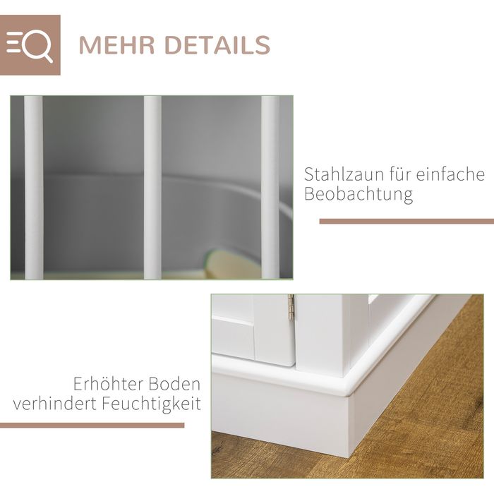Diese Hundebox für Zuhause bietet eine grosszügige, ebene Fläche für Komfort. Die drei Türen des Hundekäfigs ermöglichen einfaches Öffnen der Verschlüsse von mehreren Seiten, damit Sie Ihren Hund bequem sitzend freilassen können. Mit dem sicheren ' PawHut ' Möbelstil-Hundekäfig erleben Sie, wie der Magnetverschluss schnell schliesst, was Ihnen Zeit und Mühe erspart.