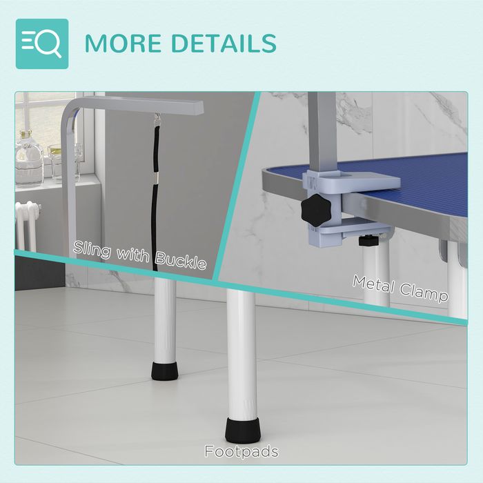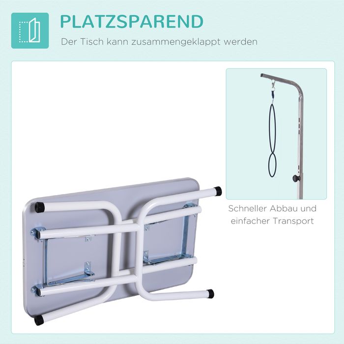 Dieser Pflegetisch von PawHut ist eine grossartige Investition für jeden professionellen oder häuslichen Hundefriseur. Er erhöht die Ebene Ihres pelzigen Freundes, sodass Sie ihn zum Baden, Trimmen, Trocknen oder Pflegen leicht erreichen können. Er verfügt über einen stabilen Tisch mit vollverschweissten, klappbaren Rohrbeinen für Stärke und Haltbarkeit und hat eine gerippte Gummioberfläche für Ihr Haustier. Es ist ein professionelles Qualitätsstück der Pflegeausrüstung, das Sie verdienen!