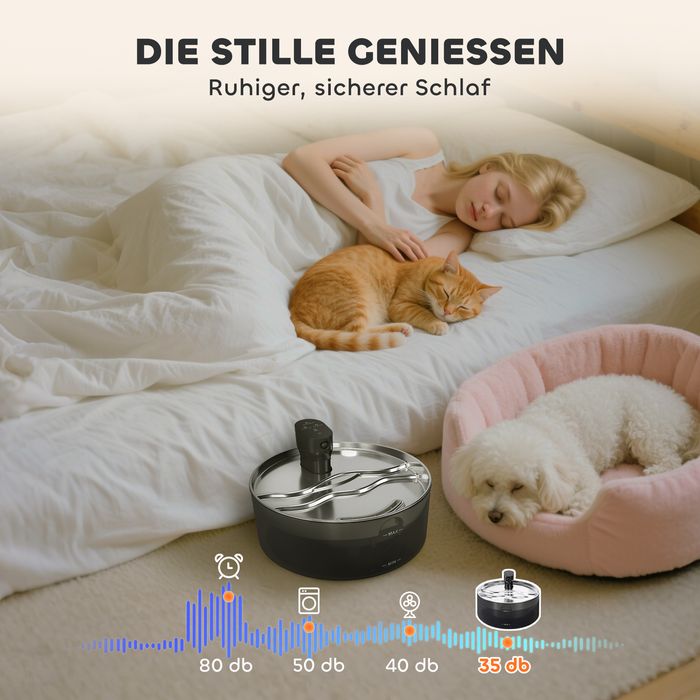 - ✔ Mehrere Fliessmodi regen Haustiere dazu an, mit natürlicher Wasserbewegung mehr zu trinken