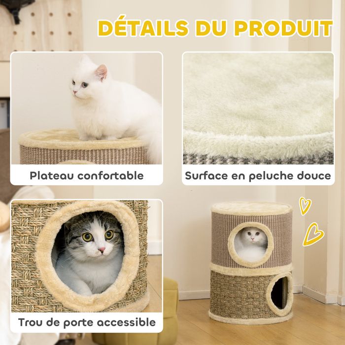 Diese mit Sisal- und Algenseilen überzogene Katzentonne von PawHut wird sicher zum neuen Lieblingsplatz Ihrer Katze werden. Es bietet einen tollen Ort zum Spielen, Schlafen und Verstecken. Das Oberdeck der Kratztonne ist mit weichem und anschmiegsamem Material bedeckt, für herrlichen Komfort beim Schlummern.