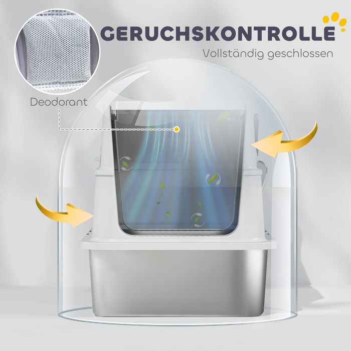 - ✔ Die vollständig geschlossene Katzentoilette schliesst Gerüche ein und hält die Luft in Innenräumen frisch