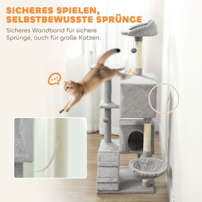 Katzenkratzbaum 160cm, mehrere Ebenen, Sisal, Höhlen, Hängematte, Leiter, Spielbälle