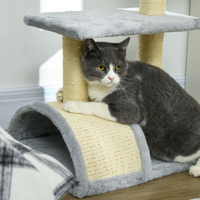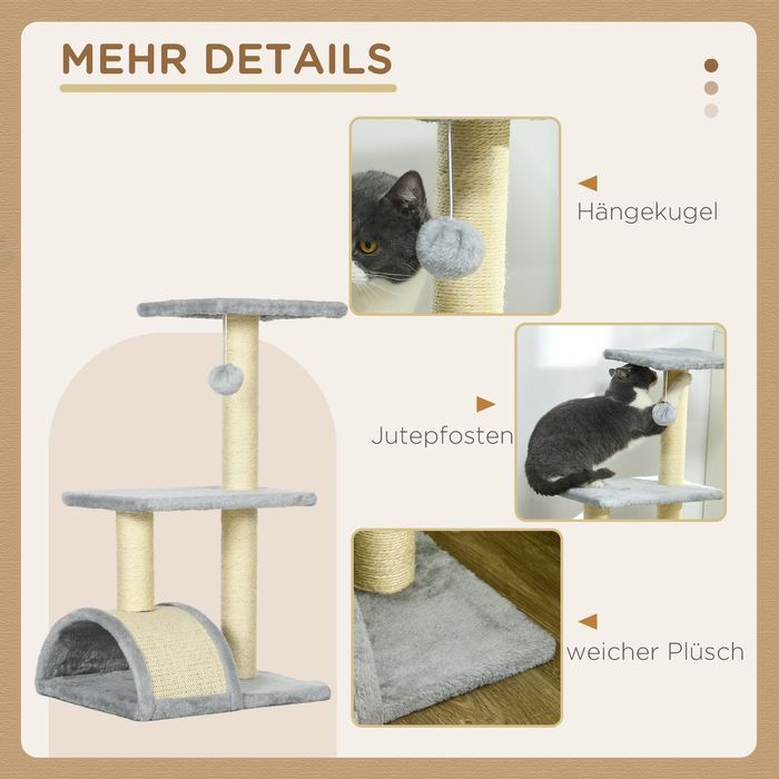 Kratzbaum 72 cm Katzenturm mit Plüschballen, Sisalstämme, Plattform, Kratzbrett Hellgrau