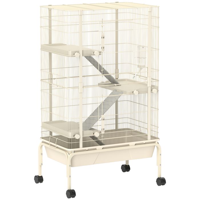 Kleintierkäfig, Haustierkäfig mit 4 Ebenen, Futterschale, Wasserflasche, 88 x 48 x 150,5 cm, Beige