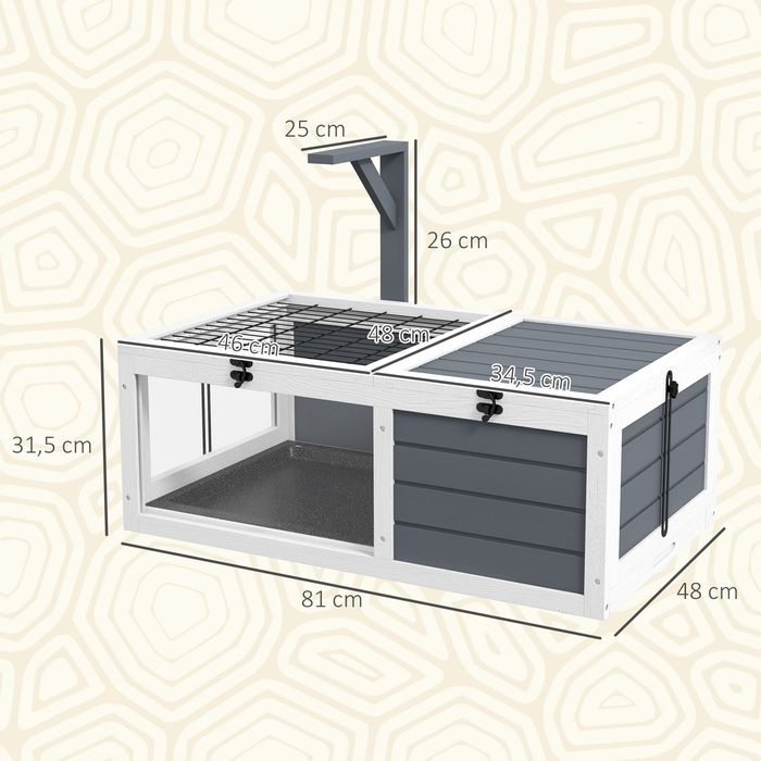 - Masse des Schildkrötengeheges: Ohne Lampenhalter: 81Lx48Bx31,5H cm