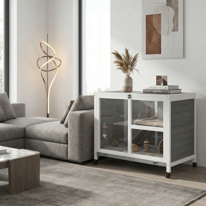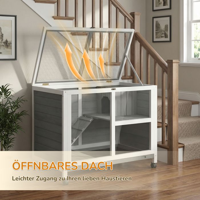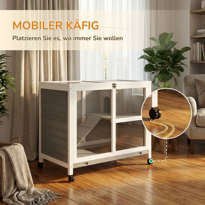- 2 Ebenen: Auf zwei Ebenen können ihre Kleintiere fressen, spielen und schlafen.