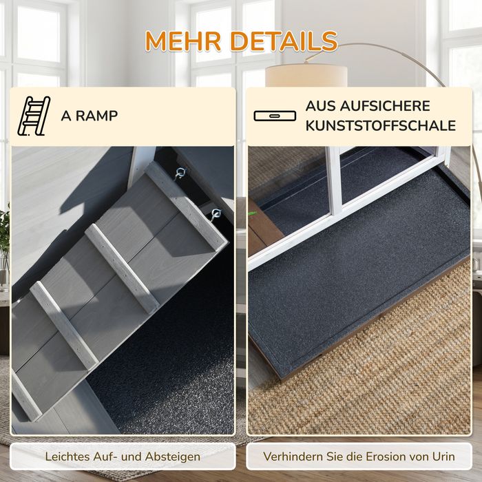 - Eine Rampe erleichtert den Wechsel zwischen den beiden Ebenen