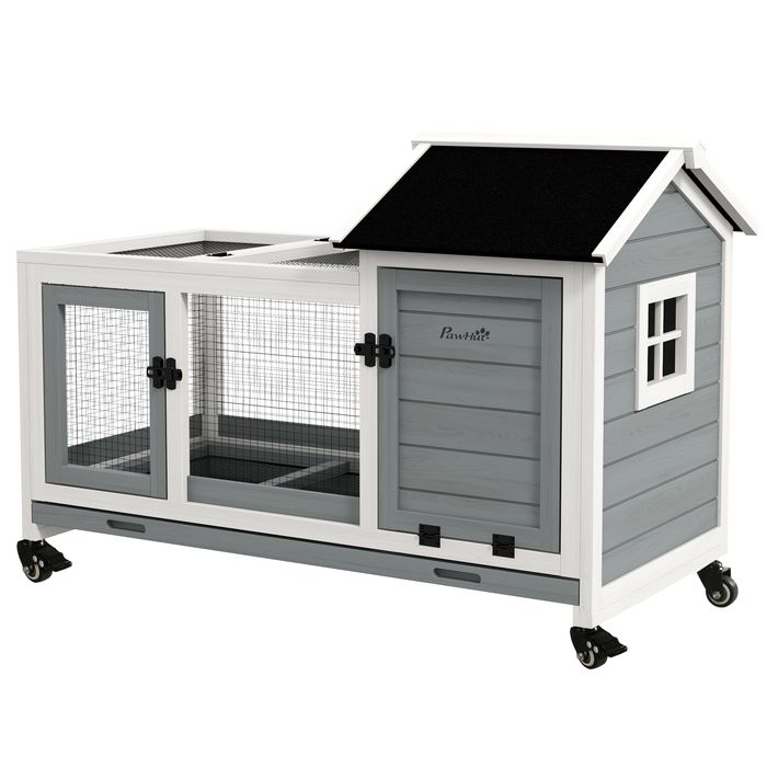 Benötigen Ihre Kleintiere ein bequemes Heim? Der geräumige PawHut Zwergkaninchenstall eignet sich ideal für Zwergkaninchen, Meerschweinchen und ähnliche Tiere. Das überdachte Haus bietet Schutz und sicheren Rückzug, während der mit Stahldraht gesicherte Auslauf für frische Luft und Bewegungsfreiheit sorgt. Dank des Klappdachs und der herausschiebbaren Bodens ist die Reinigung kinderleicht. Mit vier Rädern lässt sich der Kleintierstall leicht versetzen - ideal für Innen- und Aussenbereiche.