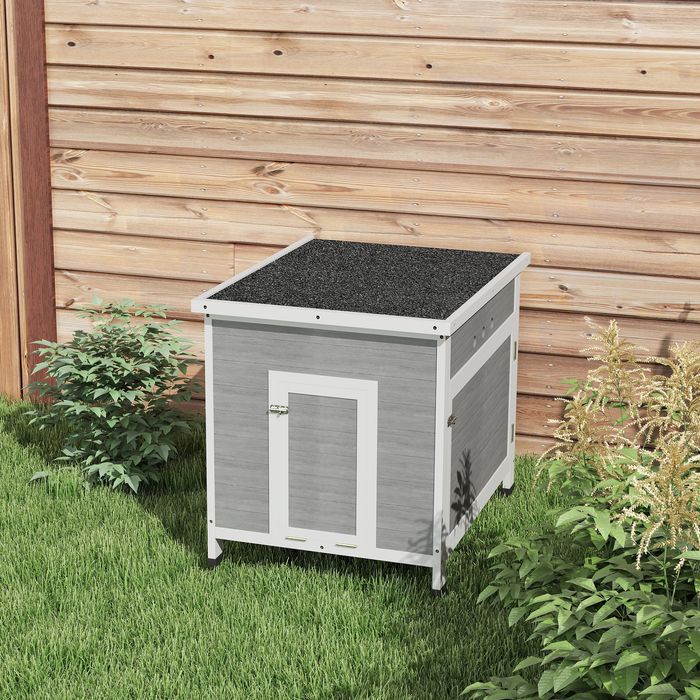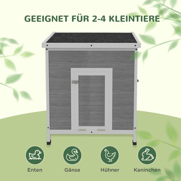 Entenstall, mit Seitentür, Belüftungslöcher, Geflügelstall, Tanne, wasserdichtes Asphaltdach, 63 x 82 x 76 cm, Hellgrau