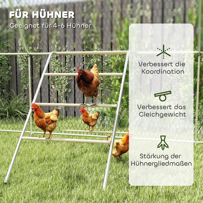 Hühner Spielgerüst aus Holz, verstellbar Schaukel, 82x150x110cm, Silber